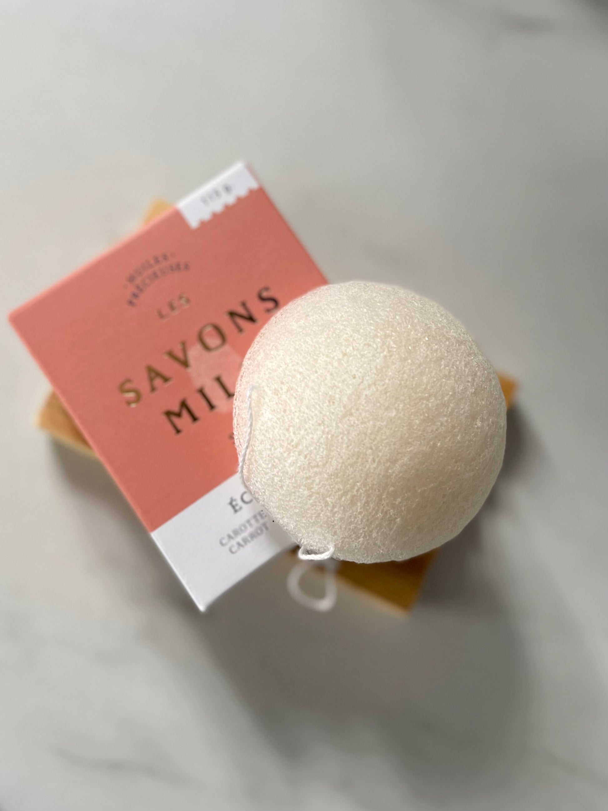 Éponge Konjac exfoliante pour visage nature / Natural konjac sponge facial exfoliant