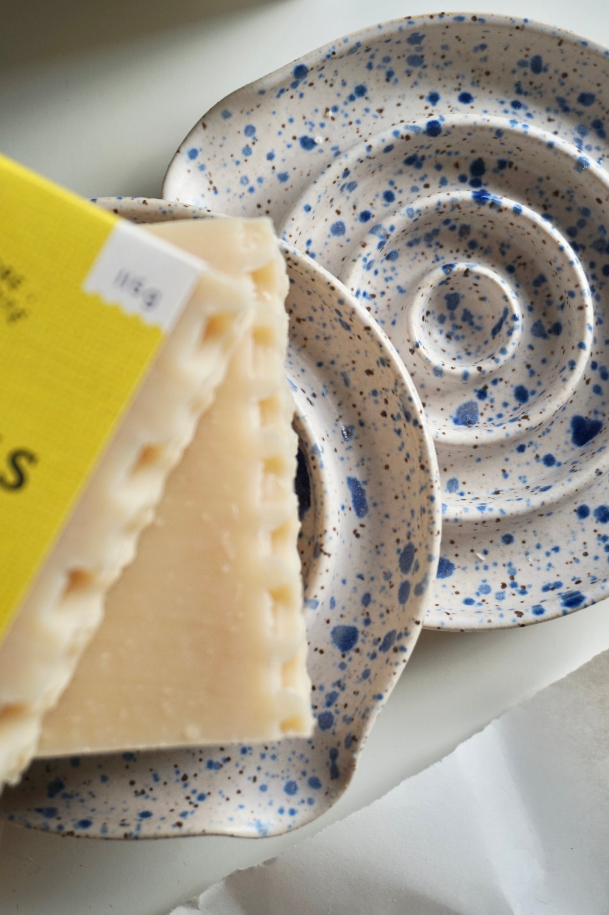 Porte-savon en céramique ÉCLATS BLEU / BLUE SPECKS ceramic soap dish